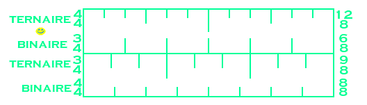This page will say nothing about any given rhythm usually shown as notes on a staff, that is, where specific events occur at certain times. In this instance, I am interested in the path along which the rhythm flows. This path is represented as a framework of ruler divisions. I am most particularly interested in the case where a rhythm is played by several people using different "rulers". The case where the music suddenly shifts from one ruler to another is assumed to be no different : a "melodic" form of the same idea.