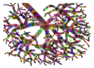 La forme est plus simple. Chaque forme est unique et caractéristique du point choisi. On donne un sens à la focalisation : de chaque point de l'arborescence, la racine est clairement visible ! |